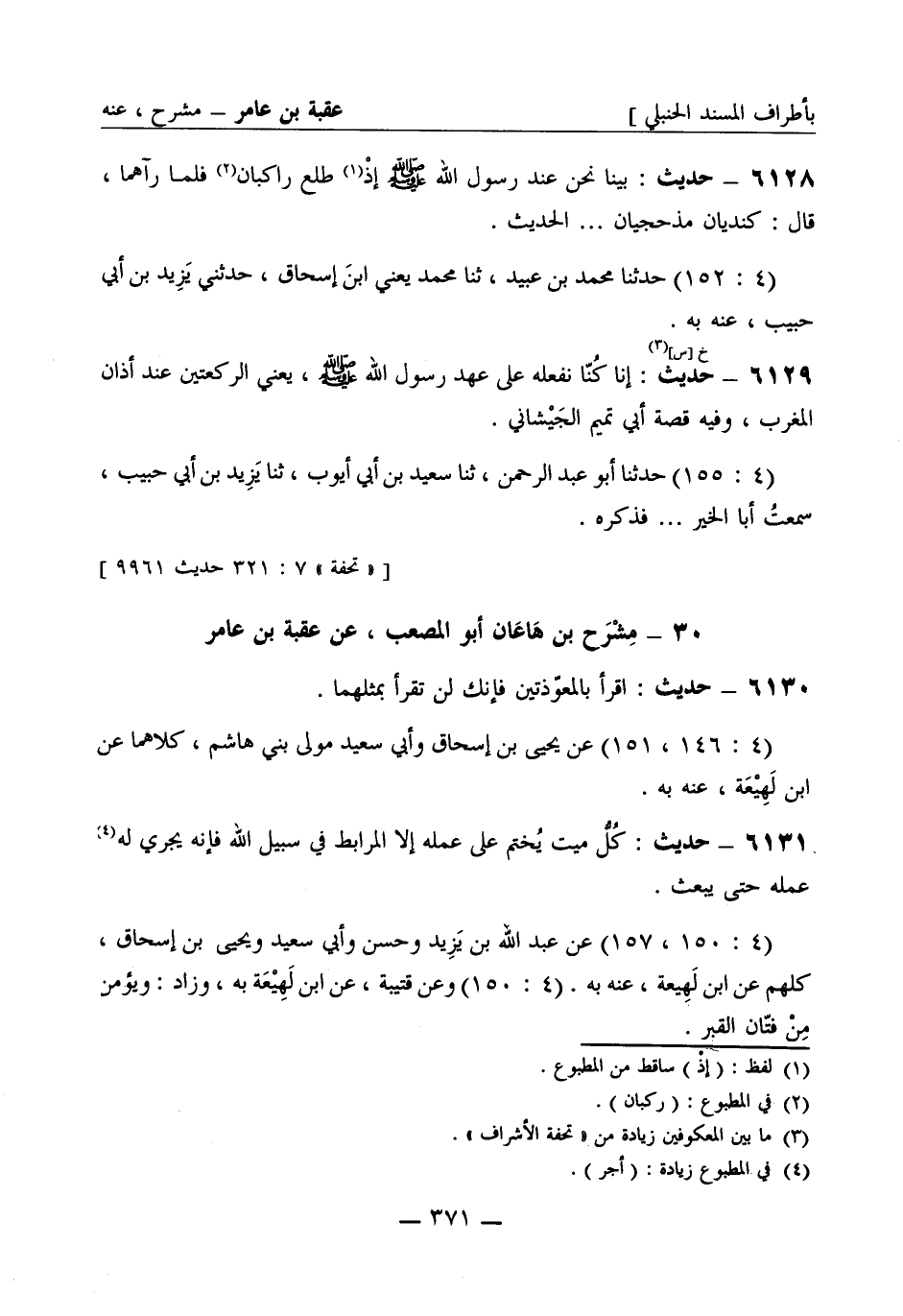 6130 - حديث اقرأ بالمعوذتين فإنك لن تقرأ بمثلهما (4: 146، 151) عن يحيى بن إسحاق وأبي سعيد مولى بني هاشم كلاهما، عن ابن لهيعة عنه به.