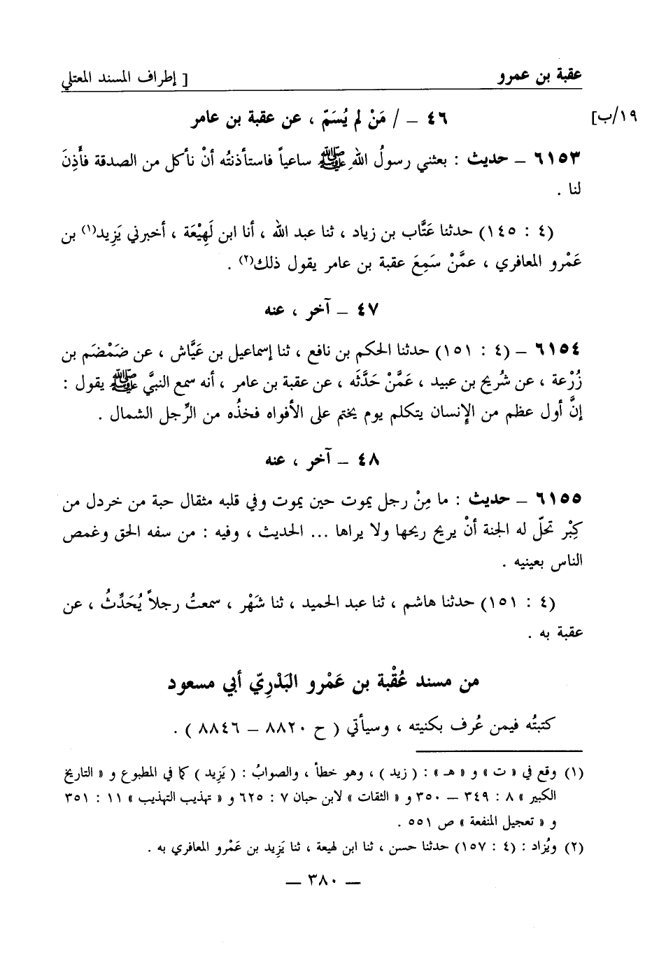 من مسند عقبة بن عمرو البدري أبي مسعود كتبته فيمن عرف بكنيته وسيأتي (ح 8820 - 8846)
