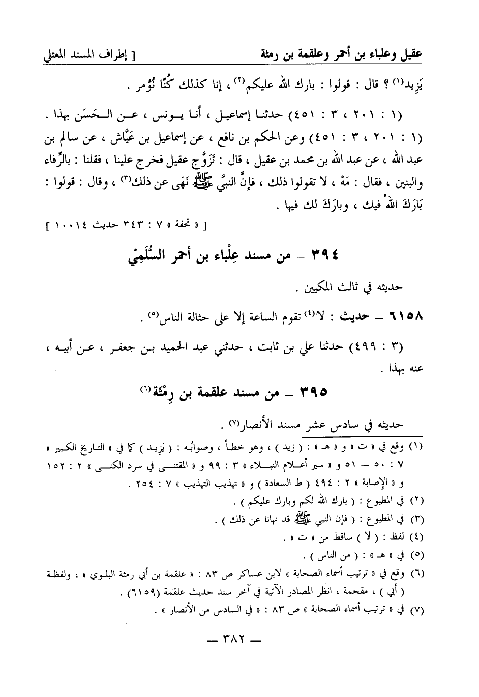 كتاب إطراف المسند المعتلي بأطراف المسند الحنبلي (اسم الجزء: 4)