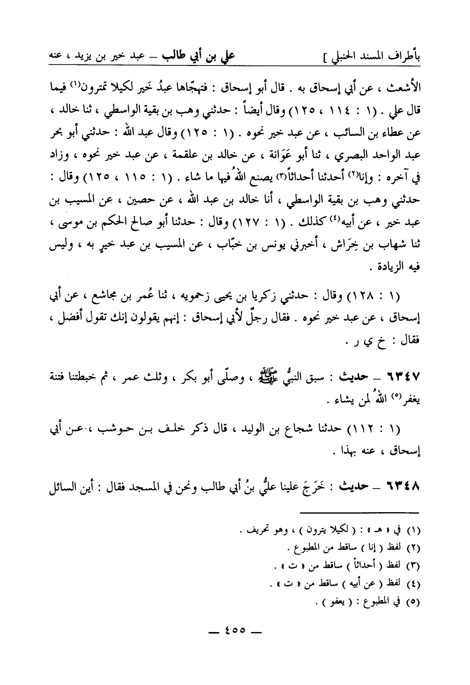 6347 - حديث سبق النبي صَلَّى اللَّهُ عَلَيْهِ وَسَلَّمَ وصلى أبو بكر وثلث عمر ثم خبطتنا فتنة يغفر الله لمن يشاء (1: 112) حدثنا شجاع بن الوليد قال ذكر خلف بن حوشب، عن أبي إسحاق، عنه بهذا.