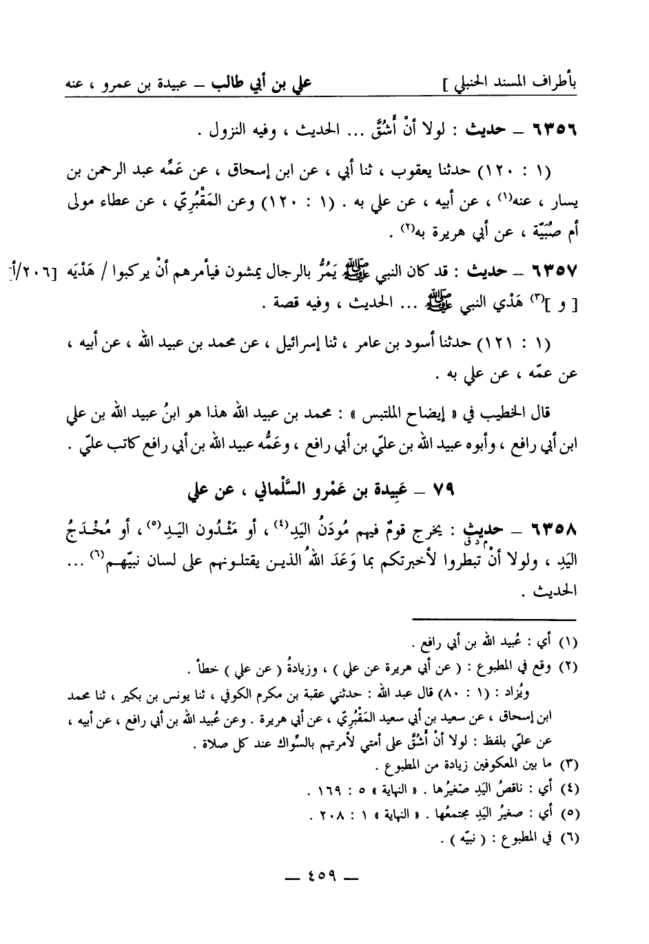 6357 - حديث قد كان النبي صَلَّى اللَّهُ عَلَيْهِ وَسَلَّمَ يمر بالرجال يمشون فيأمرهم أن يركبوا / هديه [و] هدي النبي صَلَّى اللَّهُ عَلَيْهِ وَسَلَّمَ ... . الحديث. وفيه قصة (1: 121) حدثنا أسود بن عامر، ثنا إسرائيل، عن محمد بن عبيد الله، عن أبيه، عن عمه، عن علي به. قال الخطيب في إيضاح الملتبس محمد بن عبيد الله هذا هو ابن عبيد الله بن علي بن أبي رافع وأبوه عبيد الله بن علي بن أبي رافع وعمه عبيد الله بن أبي رافع كاتب علي