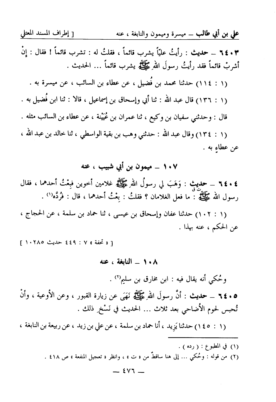 6403 - حديث: رأيت عليا يشرب قائما فقلت له تشرب قائما فقال إن أشرب قائما فقد رأيت رسول الله صَلَّى اللَّهُ عَلَيْهِ وَسَلَّمَ يشرب قائما..... الحديث. (1: 114) حدثنا محمد بن فضيل، عن عطاء بن السائب، عن ميسرة به (1: 136) قال عبد الله: ثنا أبي وإسحاق بن إسماعيل قالا: ثنا ابن فضيل به. قال وحدثني سفيان بن وكيع، ثنا عمران بن عيينة، عن عطاء بن السائب مثله (1: 134) وقال عبد الله: حدثني وهب بن بقية الواسطي، ثنا خالد بن عبد الله، عن عطاء به