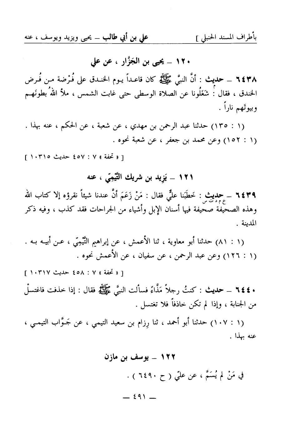 يوسف بن مازن في من لم يسم، عن علي (ح -[492]- 6490) [ذوو الكنى، عن علي]