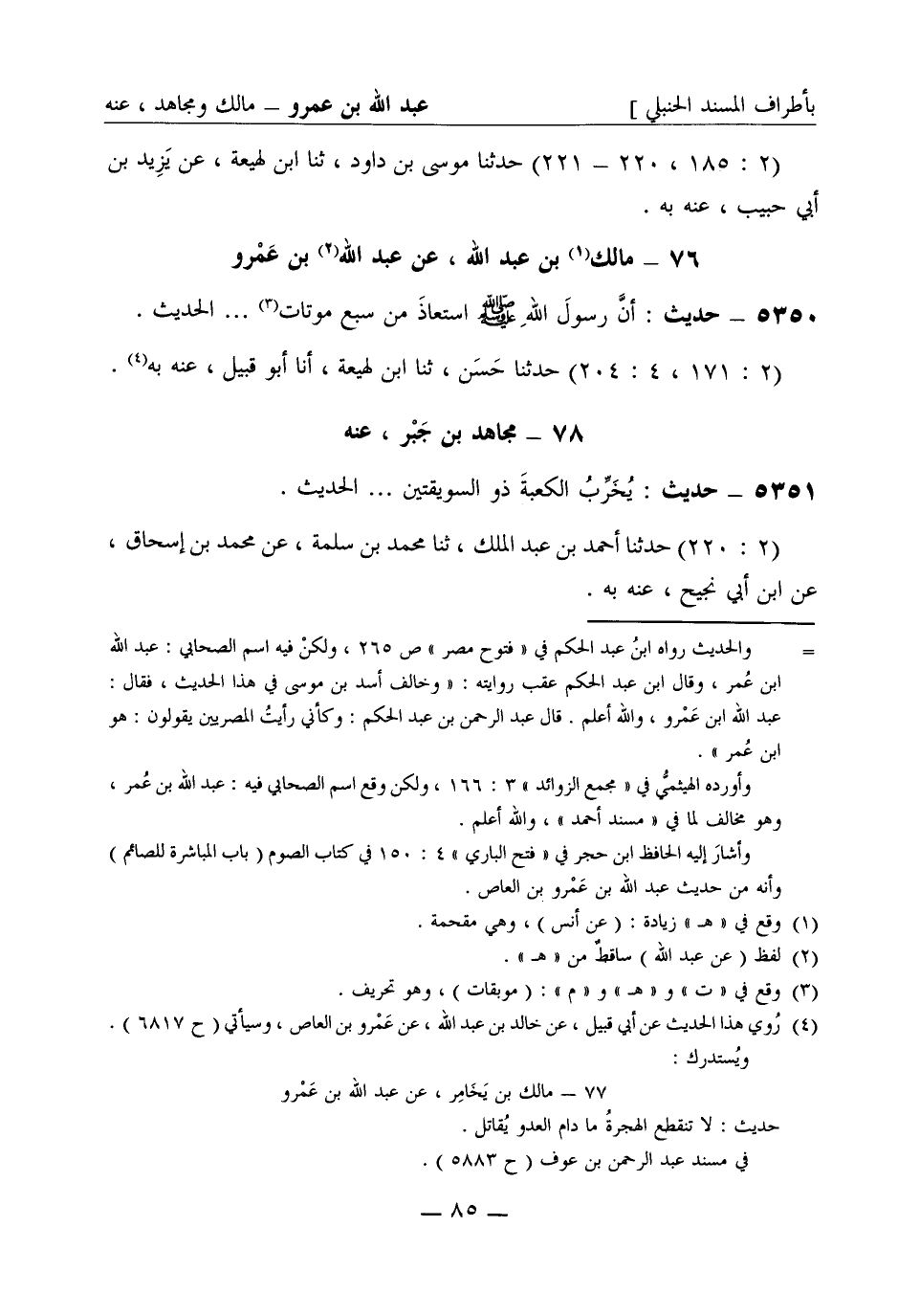 5351 - حديث يخرب الكعبة ذو السويقتين ... . الحديث. (2: 220) حدثنا أحمد بن عبد الملك، ثنا محمد بن سلمة، عن محمد بن إسحاق، عن ابن أبي نجيح عنه به.