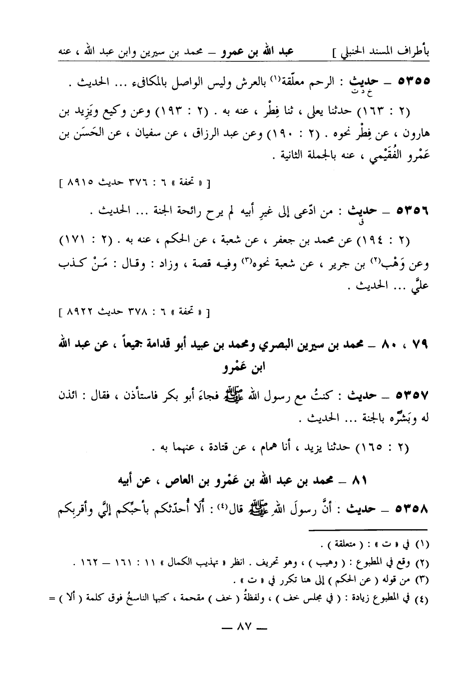 ، 80 - محمد بن سيرين البصري ومحمد بن عبيد أبو قدامة جميعا، عن عبد الله بن عمرو