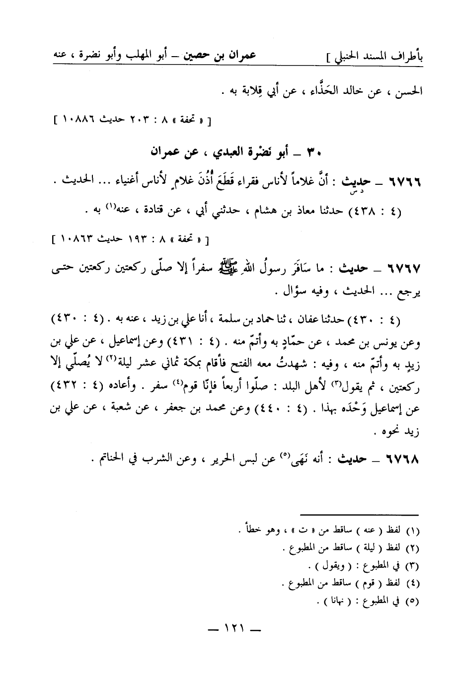 كتاب إطراف المسند المعتلي بأطراف المسند الحنبلي (اسم الجزء: 5)