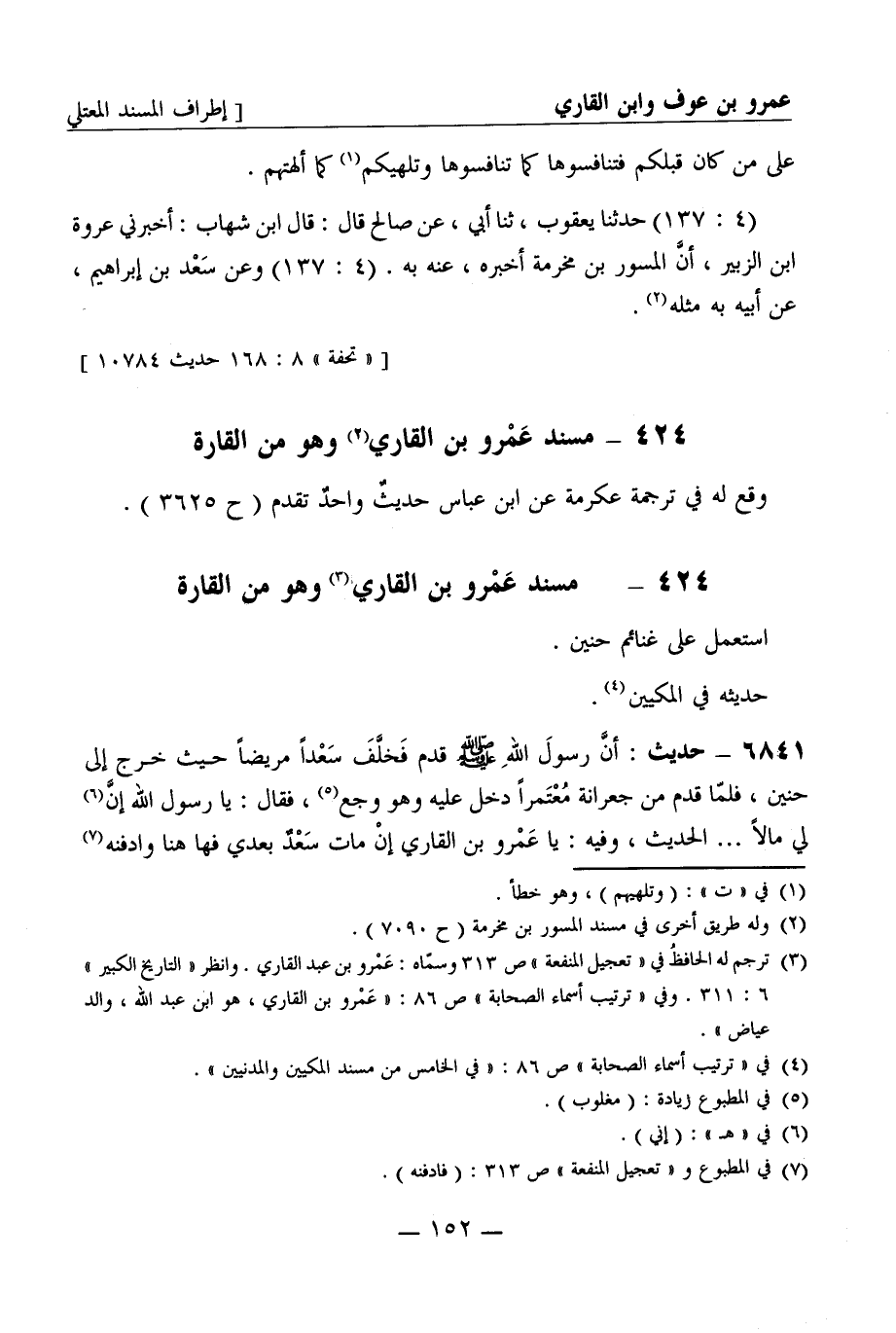6840 - مسند عمرو بن القاري وهو من القارة وقع له في ترجمة عكرمة عن ابن عباس حديث واحد تقدم (ح 3625) .