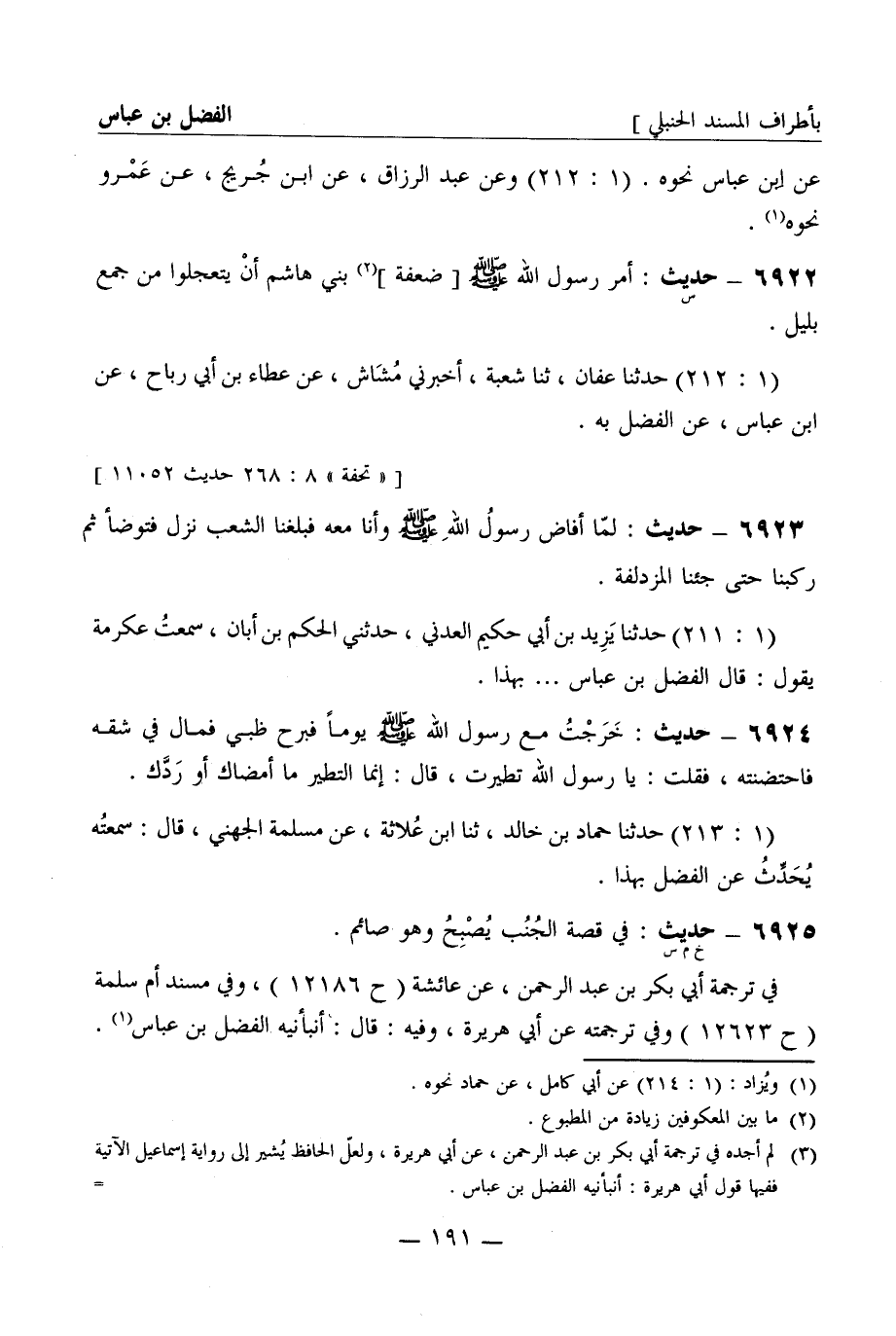 6923 - حديث: لما أفاض رسول الله صَلَّى اللَّهُ عَلَيْهِ وَسَلَّمَ وأنا معه فبلغنا الشعب نزل فتوضأ ثم ركبنا حتى جئنا المزدلفة. (1: 211) حدثنا يزيد بن أبي حكيم العدني، حدثني الحكم بن أبان، سمعت عكرمة يقول: قال الفضل بن عباس ... بهذا.