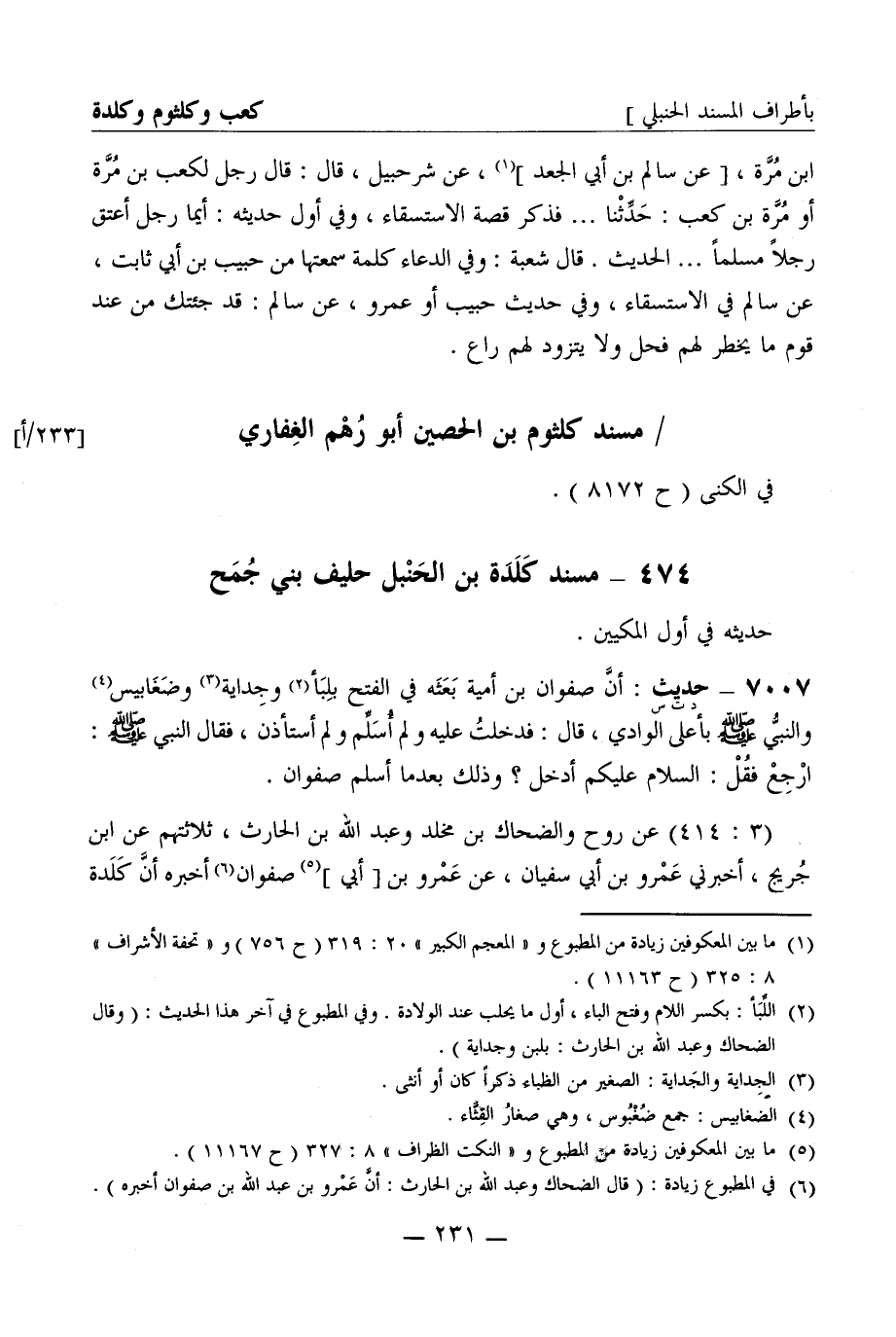 مسند كلدة بن الحنبل حليف بني جمح حديثه في أول المكيين.