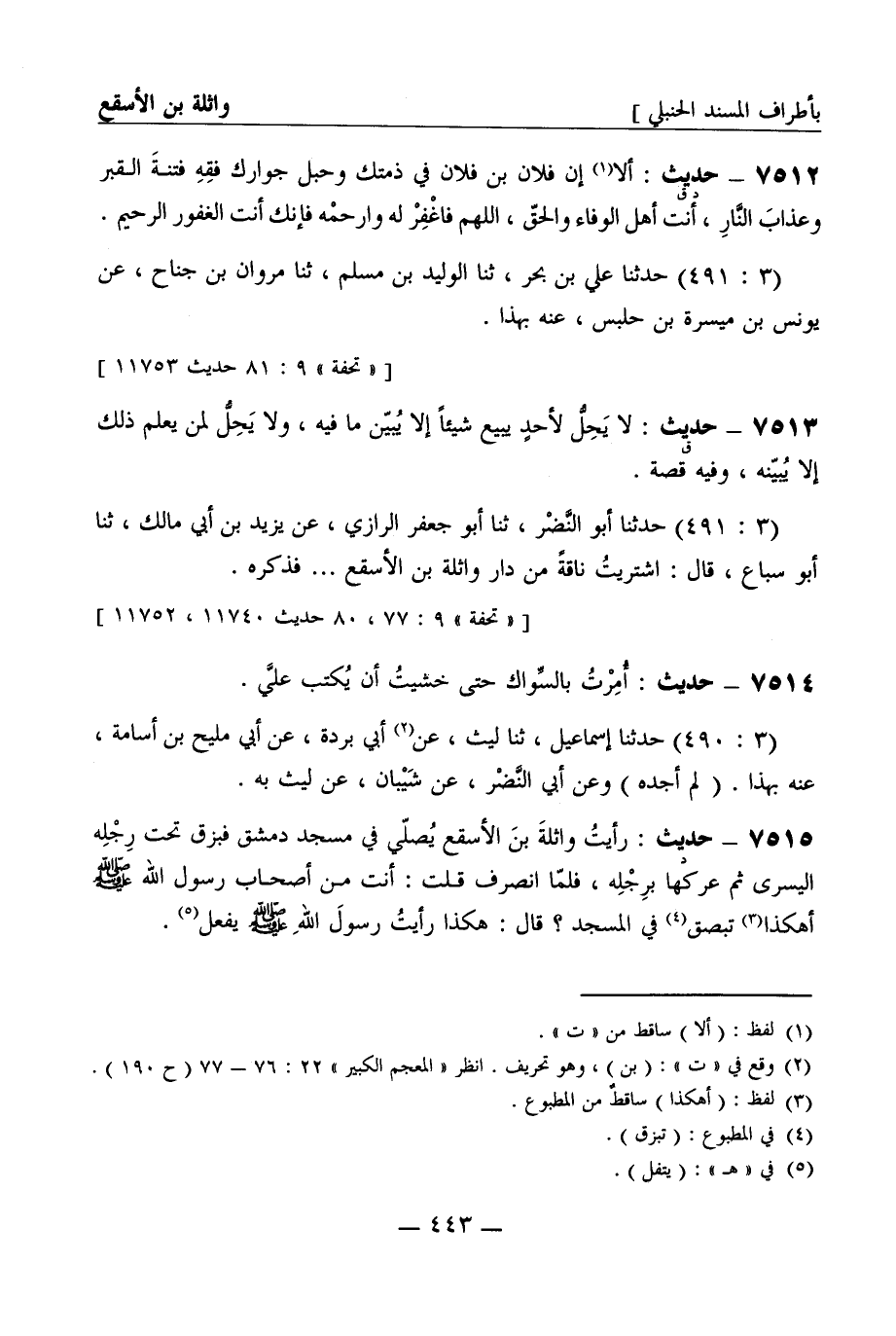 [تحفة 9: 77، 80 حديث 11740، 11752]