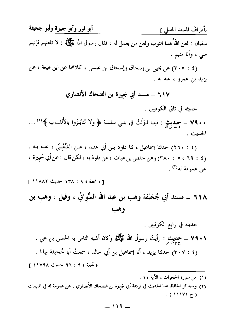 مسند أبي جُحَيْفة وَهْب بن عبد الله السُّوائي، وقيل: وَهْب بن وَهْب حديثه في رابع الكوفيين.