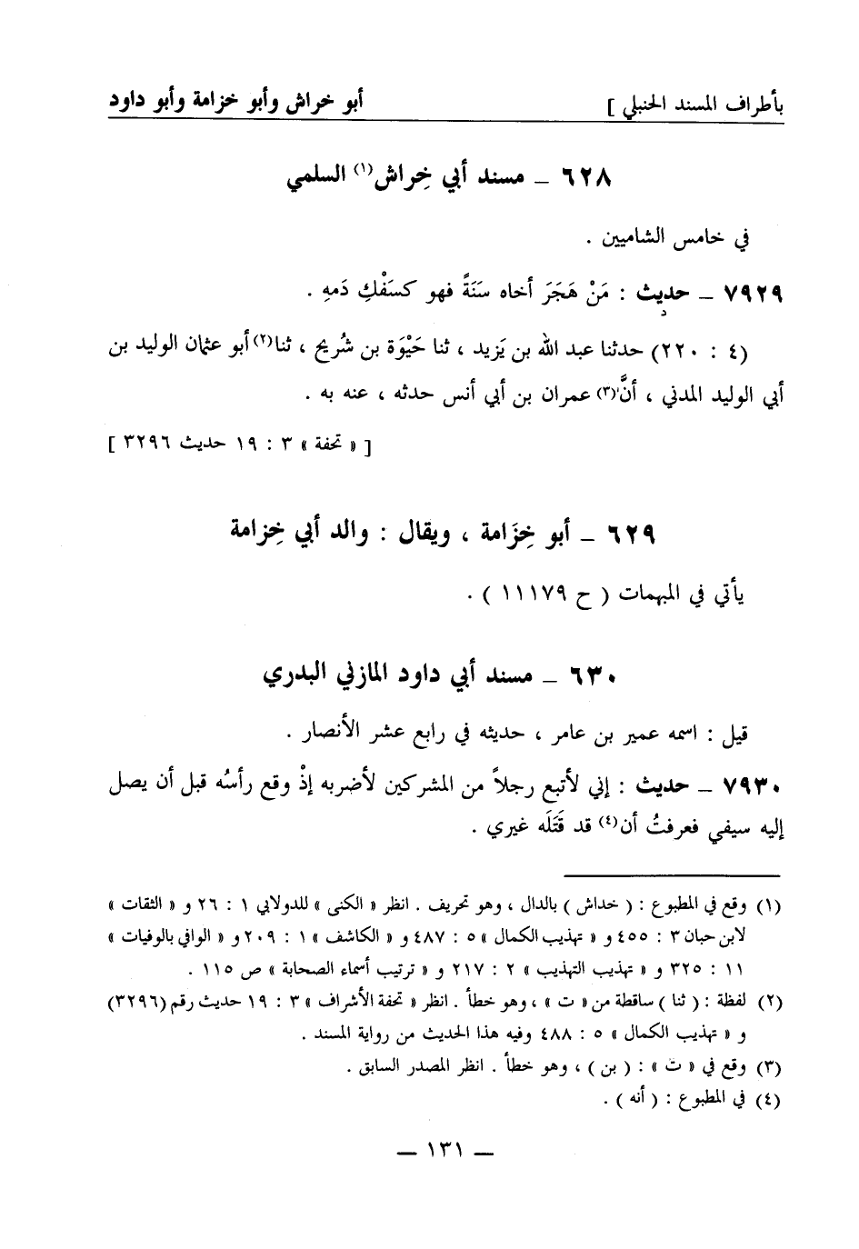 7929 -[د] حديث: من هَجَرَ أخاه سَنَةً فهو كسَفْكِ دَمِه. (4: 220) حَدَّثَنا عبد الله بن يزيد، ثنا حيوه بن شُرَيْح، ثنا أبو عثمان الوليد بن أبي الوليد المدني، أنَّ عمران بن أبي أنس حَدَّثَه، عنه به.