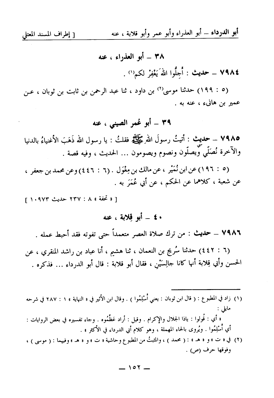 كتاب إطراف المسند المعتلي بأطراف المسند الحنبلي (اسم الجزء: 6)