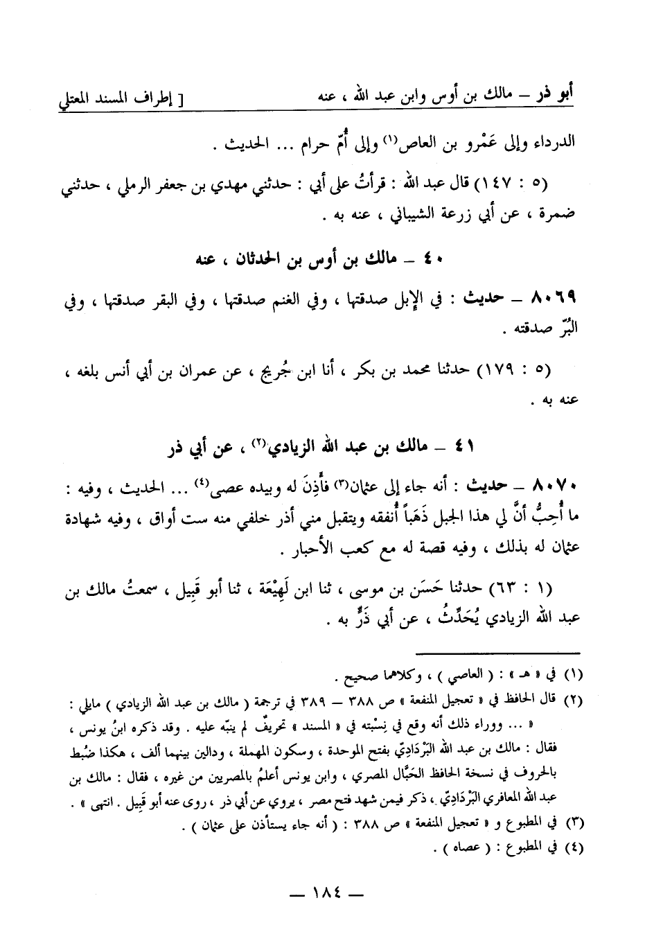 8070 - حديث: أنه جاء إلى عثمان فأَذِنَ له وبيده عصى ... الحديث، وفيه: ما أُحِبُّ أنَّ لي هذا الجبل ذَهَبَاً أُنفقه ويتقبل مني أذر خلفي منه ست أواق، وفيه شهادة عثمان له بذلك، وفيه قصة له مع كعب الأحبار. (1: 63) حَدَّثَنا حَسَن بن موسى، ثنا ابن لَهِيْعَة، ثنا أبو قَبِيل، سمعتُ مالك بن عبد الله الزيادي يُحَدِّثُ، عن أبي ذَرٍّ به. -[185]- وقع هذا في مسند عثمان.