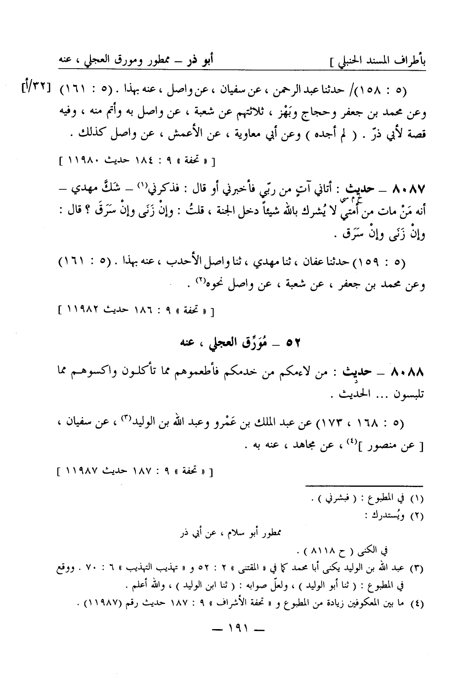 8088 -[د] حديث: من لاءمكم من خدمكم فأطعموهم مما تأكلون واكسوهم مما تلبسون ... . الحديث. (5: 168: 173) عن عبد الملك بن عمرو وعبد الله بن الوليد، عن سفيان، [عن منصور] ، عن مجاهد، عنه به.