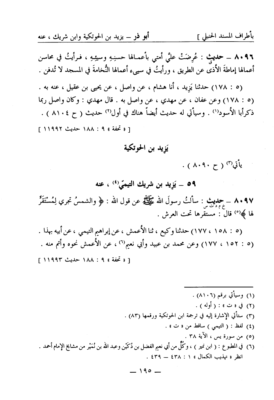 [تحفة 9: 188 حديث 11992] يزيد بن الحَوْتكية يأتي (ح 8090) .