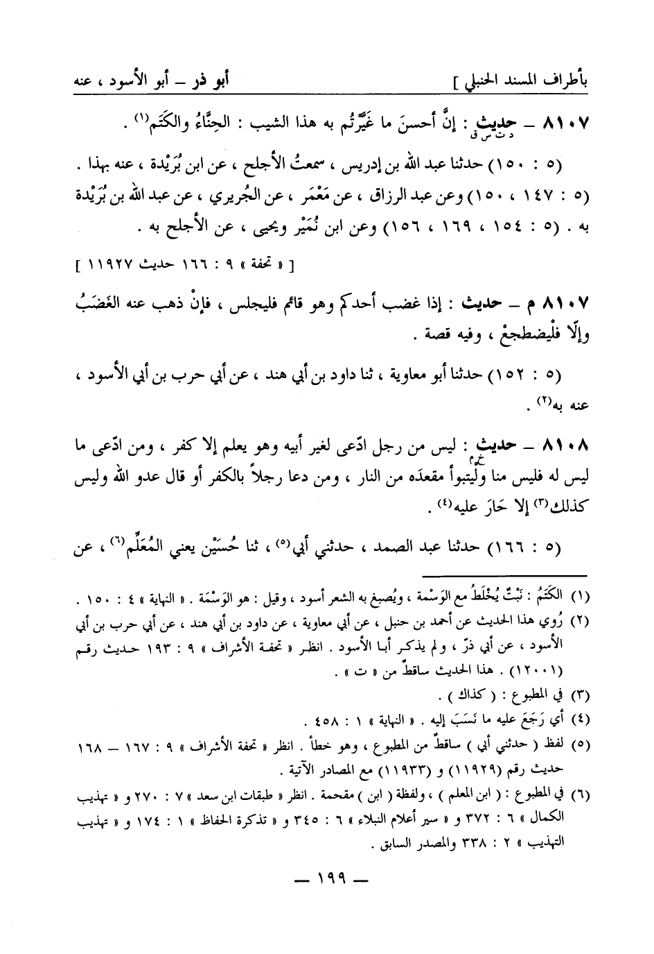 8107 -[م] حديث: إذا غضب أحدكم وهو قائم فليجلس، فإن ذهب عنه الغَضَبُ وإلا فلْيضطجعْ، وفيه قصة. (5: 152) حَدَّثَنا أبو معاوية، ثنا داود بن أبي هند، عن أبي حَرْب بن أبي الأسود، عنه به.