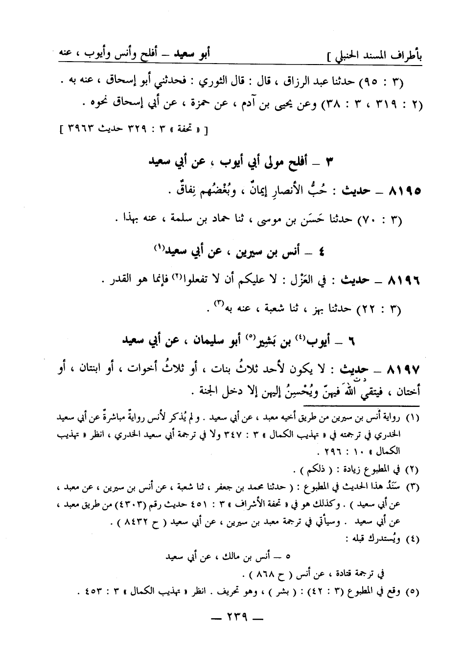 8195 - حديث: حُبُّ الأنصارِ إيمانٌ، وبُغْضُهم نِفاق. (3: 70) حَدَّثَنا حَسَن بن موسى، ثنا حمّاد بن سَلَمة، عنه بهذا.