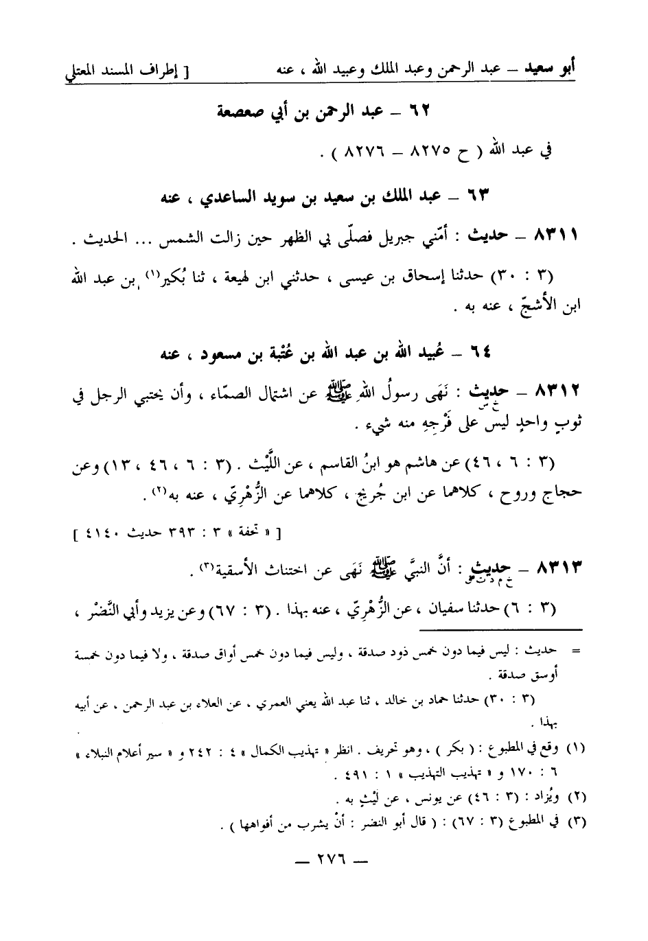 عبد الرحمن بن أبي صعصعة في عبد الله (ح 8275 - 8276) .