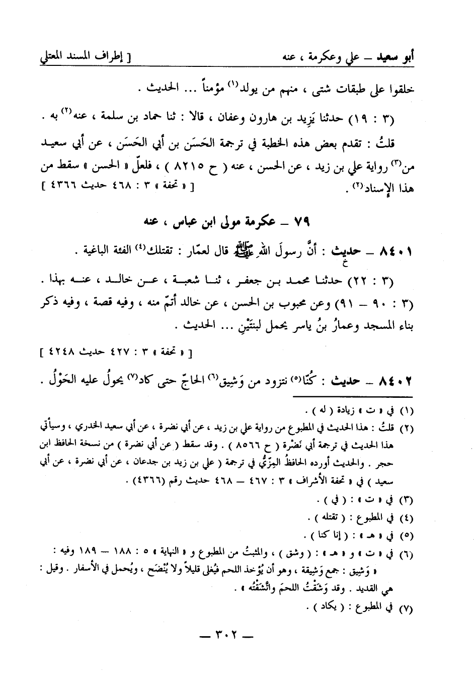 8402 - حديث: كُنّا نتزود من وَشِيق الحاجّ حتى كاد يحولُ عليه الحَوْل -[303]-. (3: 85) حَدَّثَنا يزيد بن أبي حكيم، حَدَّثَني الحكم هو ابن أبان، عنه بهذا.