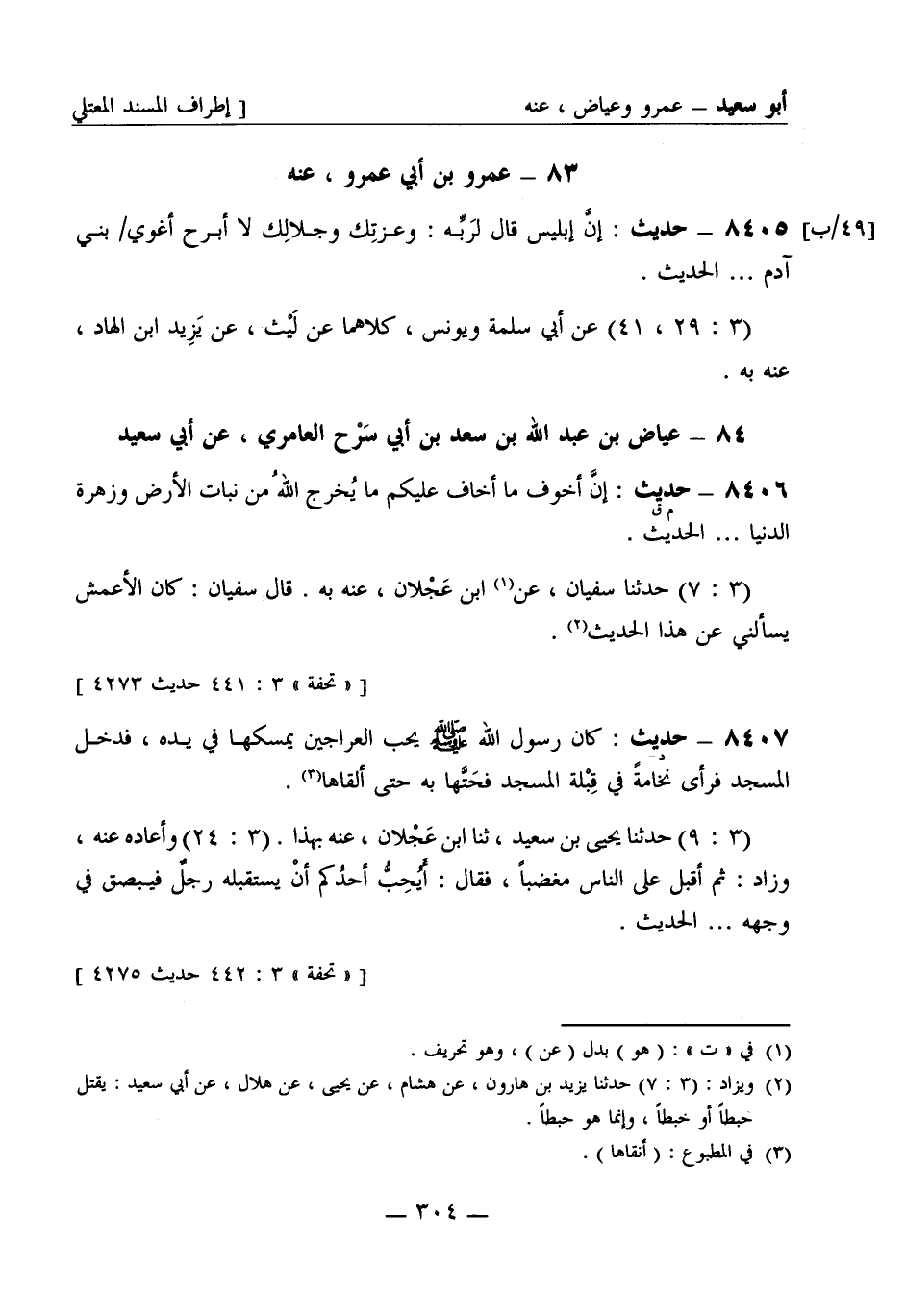 8405 - حديث: إنَّ إبليس قال لرَبِّه: وعزتِك وجلالِك لا أبرح أغوي بني آدم ... . الحديث. (3: 29، 41) عن أبي سلمة ويونس، كلاهما عن لَيْث، عن يزيد بن الهَاد، عنه به.
