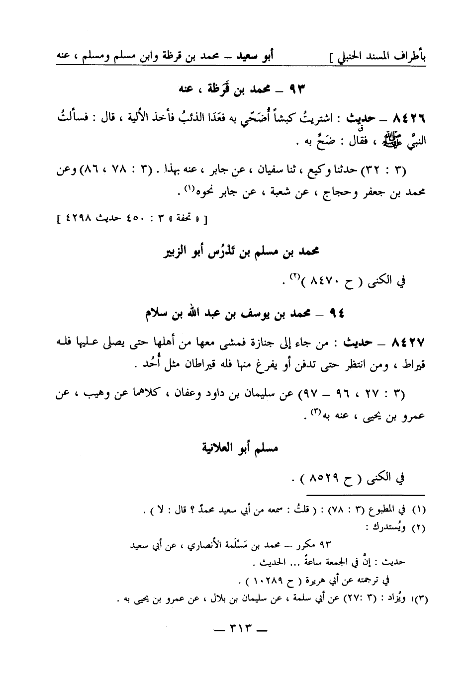 [تحفة 3: 450 حديث 4298] محمد بن مسلم بن تَدْرُس أبو الزبير في الكنى (ح 8470) .