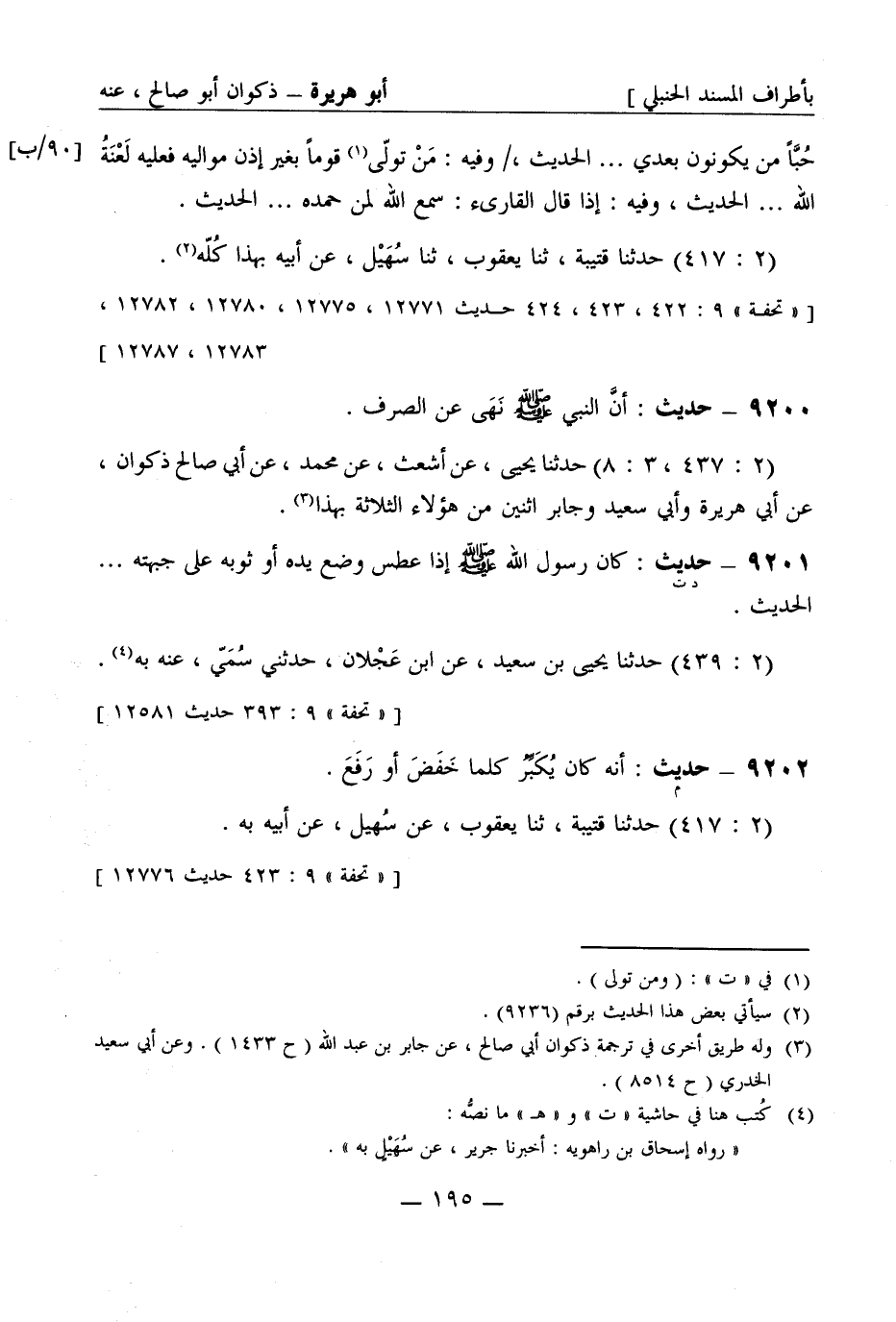 9202 -[م] حديث: أنه كان يُكَبِّرُ كلما خَفَضَ أو رَفَع (2: 417) حَدَّثَنا قُتَيبة ثنا يعقوب عن سُهَيل عن أبيه به