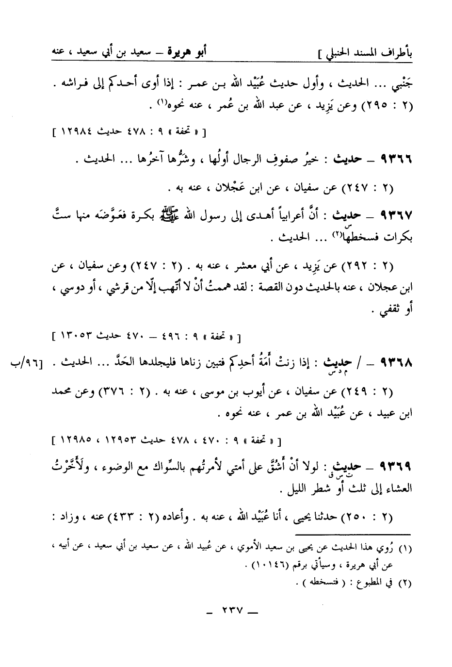 [تحفة 9: 479 - 480 حديث 12988، 12989]