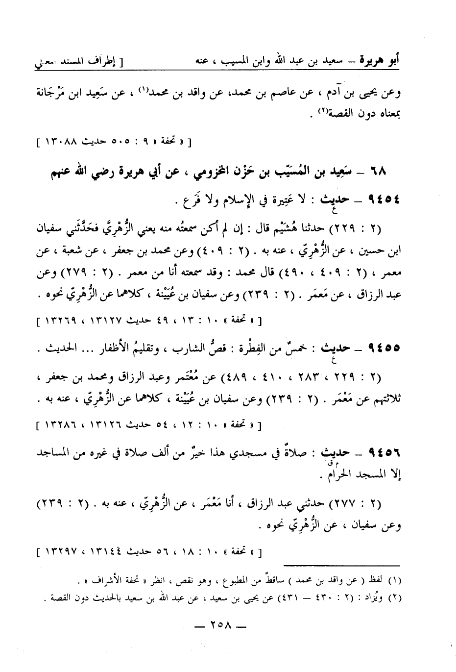 9456 -[م ق] حديث صلاةٌ في مسجدي هذا خيرٌ من ألف صلاة في غيره من المساجد إلا المسجد الحرام (2: 277) حَدَّثَني عبد الرزاق أنا مَعْمَر عن الزُّهْرِيّ عنه به (2: 239) وعن سفيان عن الزُّهْرِيّ نحوه -[259]-