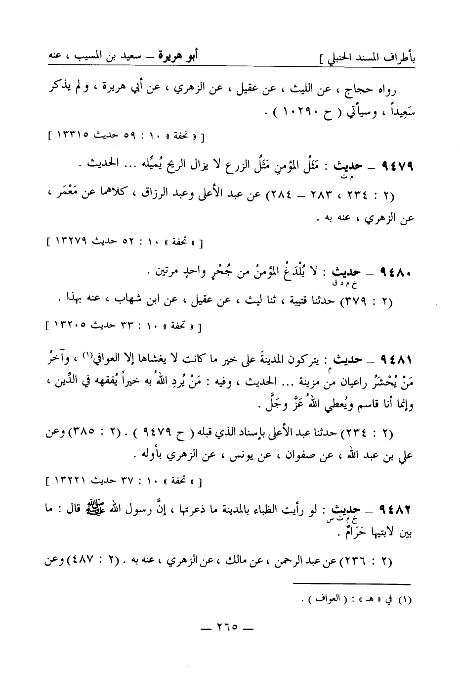 9480 -[خ م د ق] حديث لا يُلْدَغُ المؤمنُ من جُحْرٍ واحدٍ مرتين (2: 379) حَدَّثَنا قتيبة ثا لَيْث عن عقيل عن ابن شهاب عنه بهذا