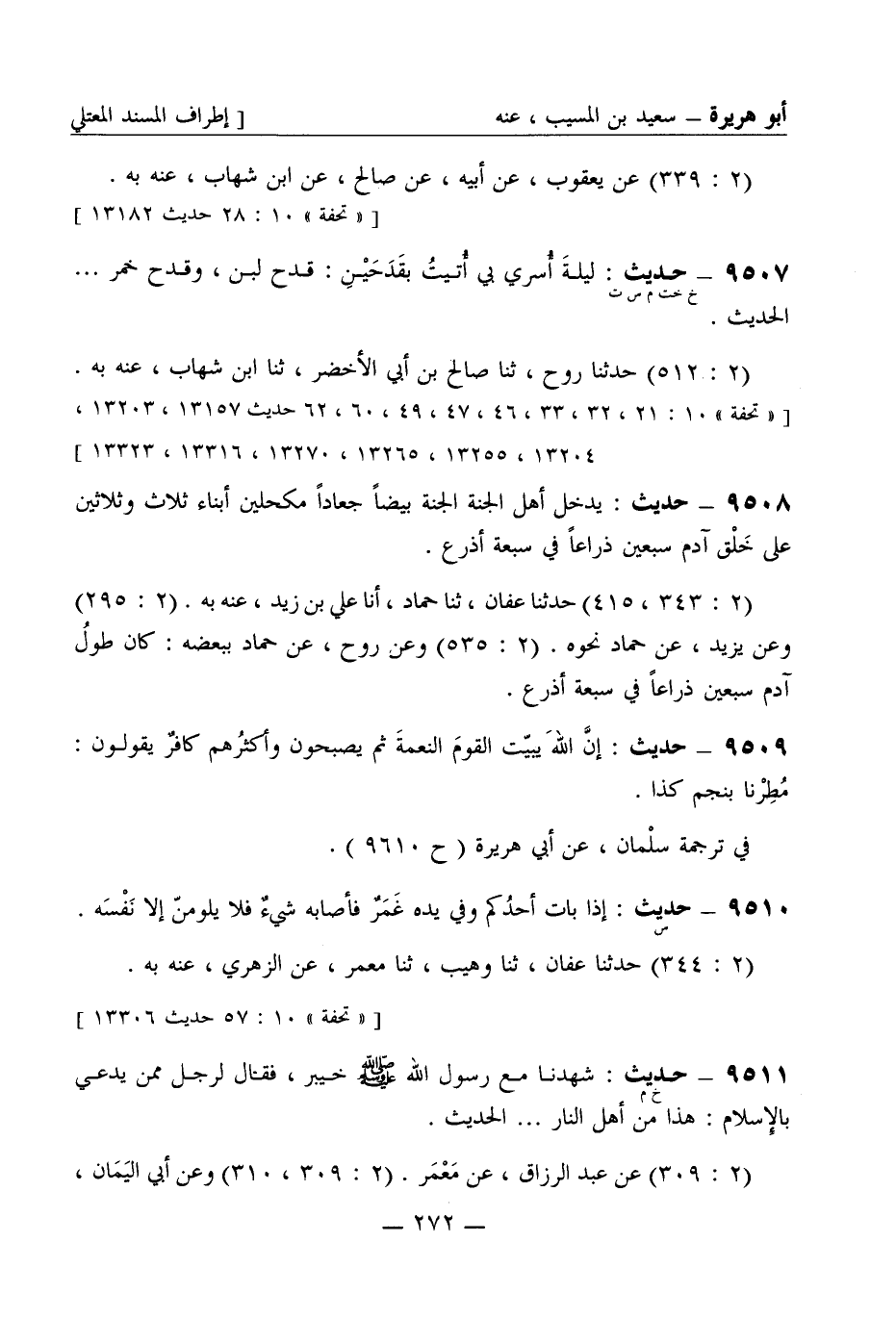 [تحفة 10: 21، 32، 33، 46، 47، 49، 60، 62 حديث 13157، 13203، 13204، 13255، 13265، 13270، 13316، 13323]