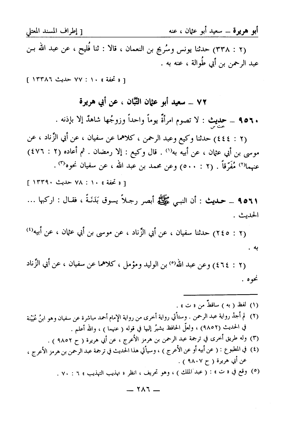 9561 - حديث: أنَّ النبيّ صَلَّى اللَّهُ عَلَيْهِ وَسَلَّمَ أبصر رجلاً يسوق بدنه فقال: اركبها ... الحديث (2: 245) حَدَّثَنا سفيان عن أبي الزِّناد عن موسى بن أبي عثمان عن أبيه به (2: 464) وعن عبد الله بن الوليد ومُؤمّل كلاهما عن سفيان عن أبي الزِّناد نحوه