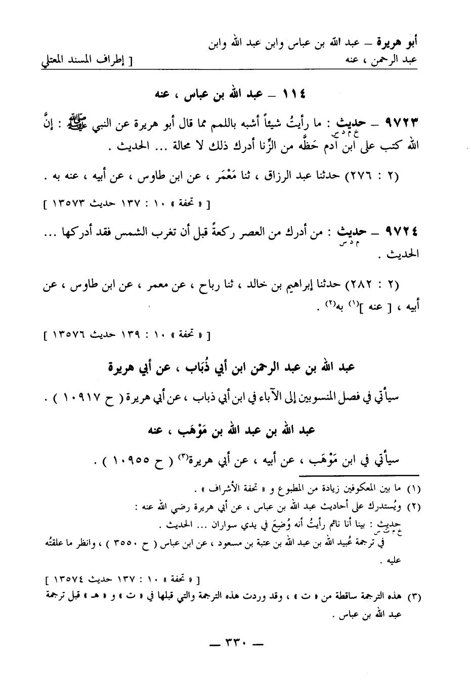 9723 -[خ م د س] حديث: ما رأيت أشبه باللمم مما قال أبو هريرة عن النبيّ صَلَّى اللَّهُ عَلَيْهِ وَسَلَّمَ: إنَّ الله كتب على ابن آدم حَظَّه من الزِّنا أدرك ذلك لا محالة ... الحديث (2: 276) حَدَّثَنا عبد الرزاق ثنا مَعْمَر عن ابن طاوس عن أبيه عنه به