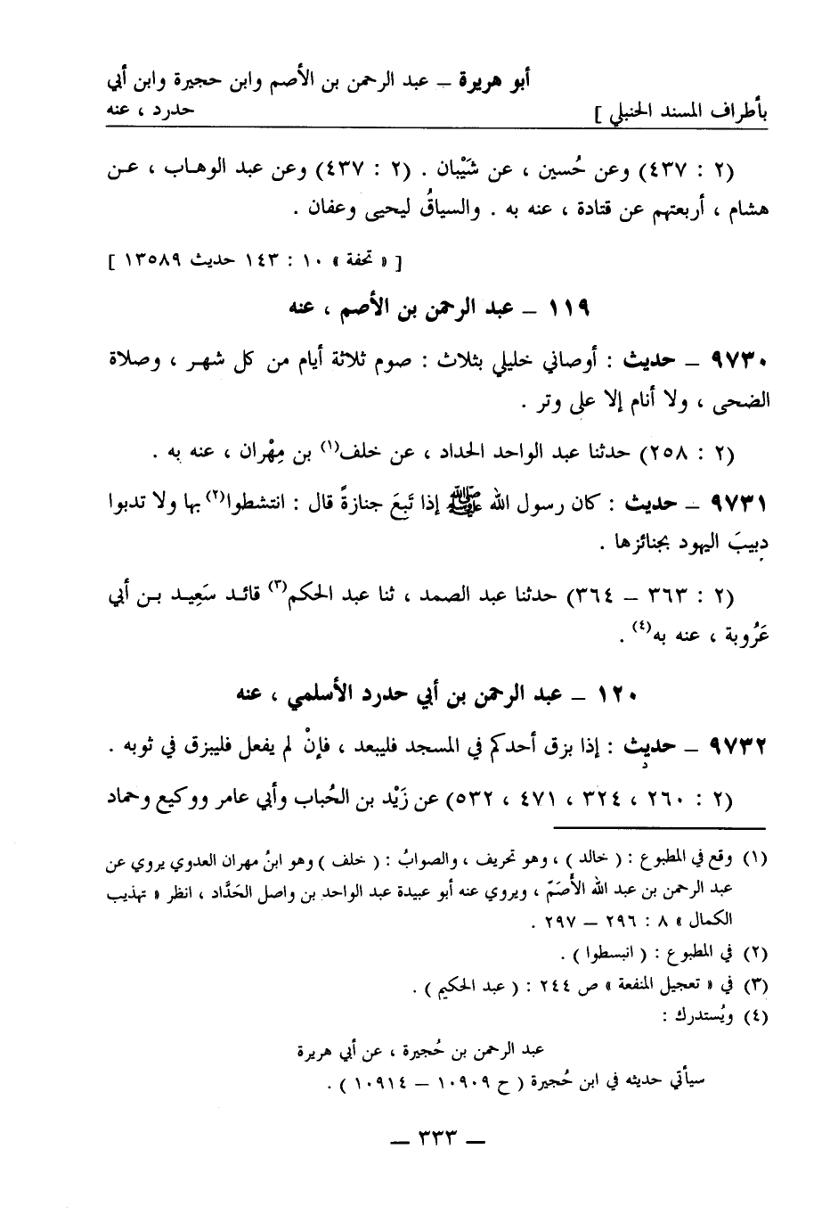 9730 - حديث: أوصاني خليلي بثلاث: صوم ثلاثة أيام من كل شَهْر وصلاة الضحى ولا أنام إلا على وتر (2: 258) حَدَّثَنا عبد الواحد الحداد عن خلف بن مِهْران عنه به