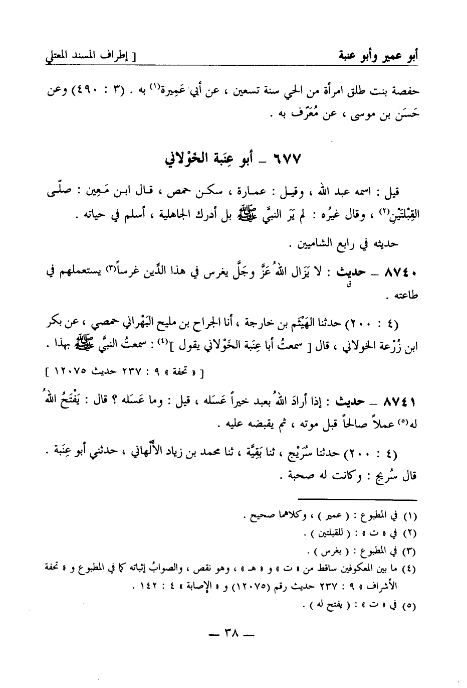 كتاب إطراف المسند المعتلي بأطراف المسند الحنبلي (اسم الجزء: 7)
