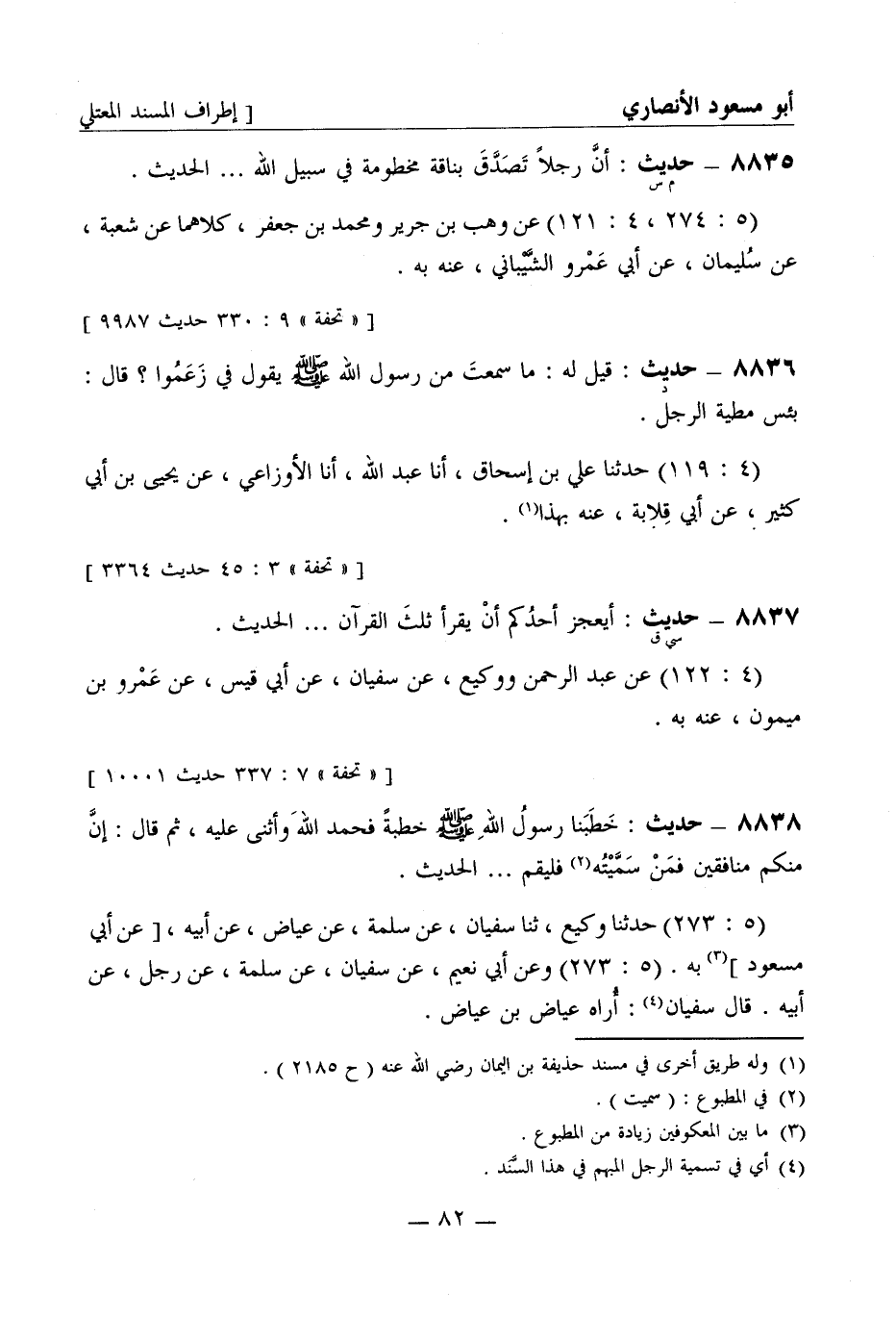 8835 -[م س] حديث: أنَّ رجلاً تَصَدَّقَ بناقةٍ مخطومة في سبيل الله ... الحديث (5: 274، 4: 121) عن وَهْب بن جَرِير ومحمد بن جعفر كلاهما عن شُعبة عن سليمان عن أبي عمرو الشَّيْبَانِيّ عنه به