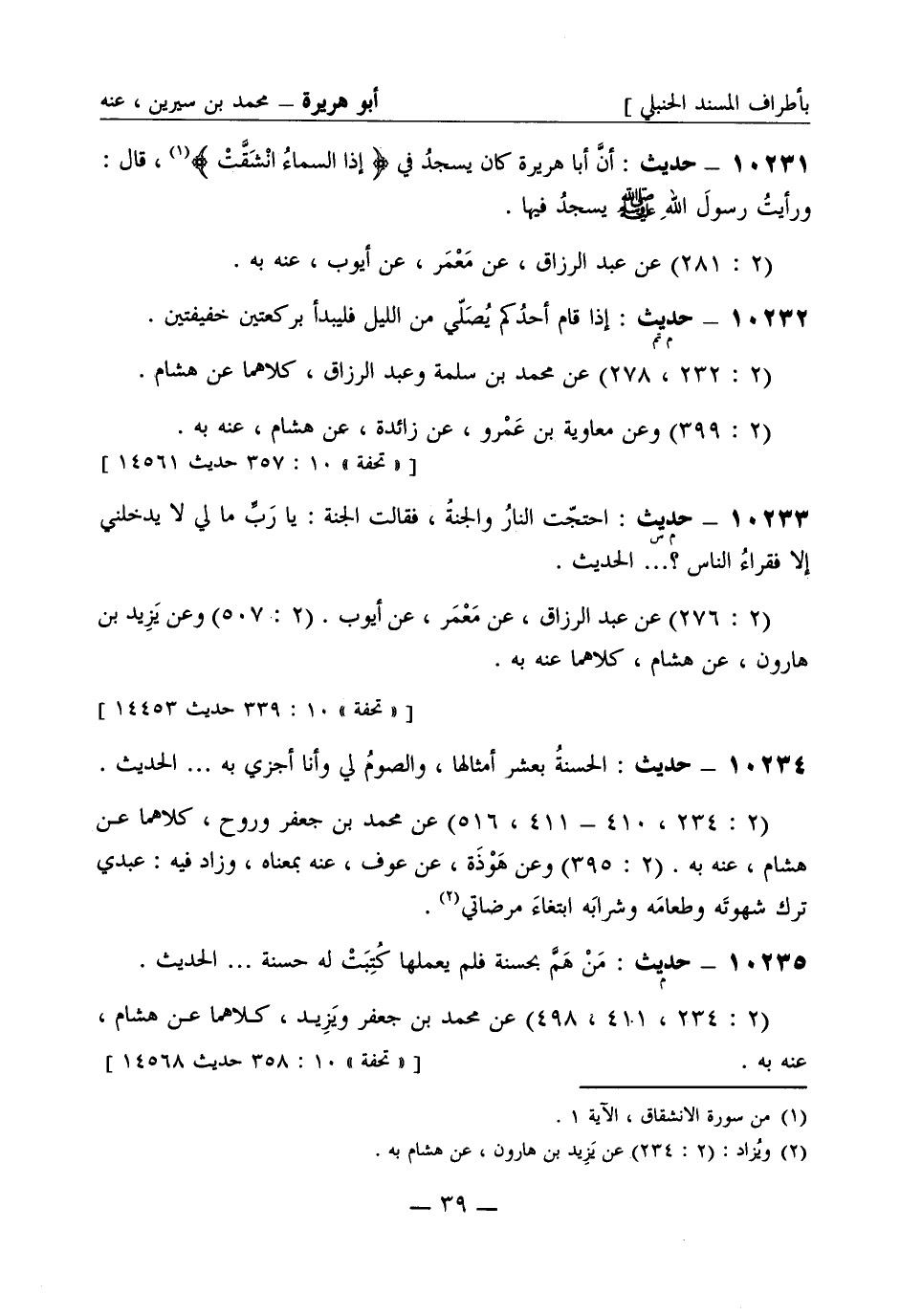 10235 -[م] حديث من هم بحسنة فلم يعملها كتبت له حسنة ... . الحديث (2: 234 , 411 , 498) عن محمد بن جعفر ويزيد كلاهما عن هشام عنه به