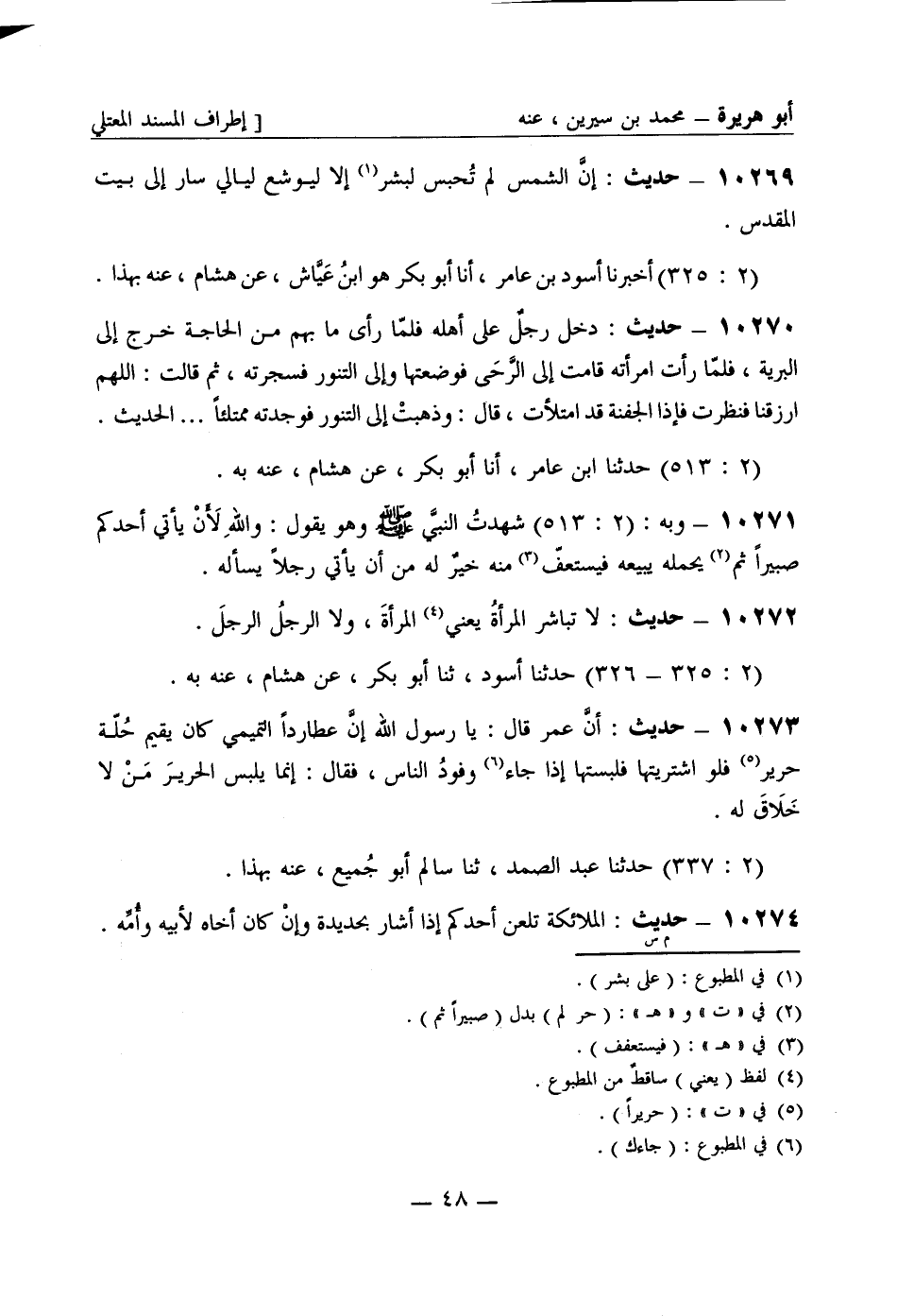 10269 - حديث إن الشمس لم تحبس لبشر إلا ليوشع ليالي سار إلى بيت المقدس (2: 325) أخبرنا أسود بن عامر أنا أبو بكر هو ابن عياش عن هشام عنه بهذا