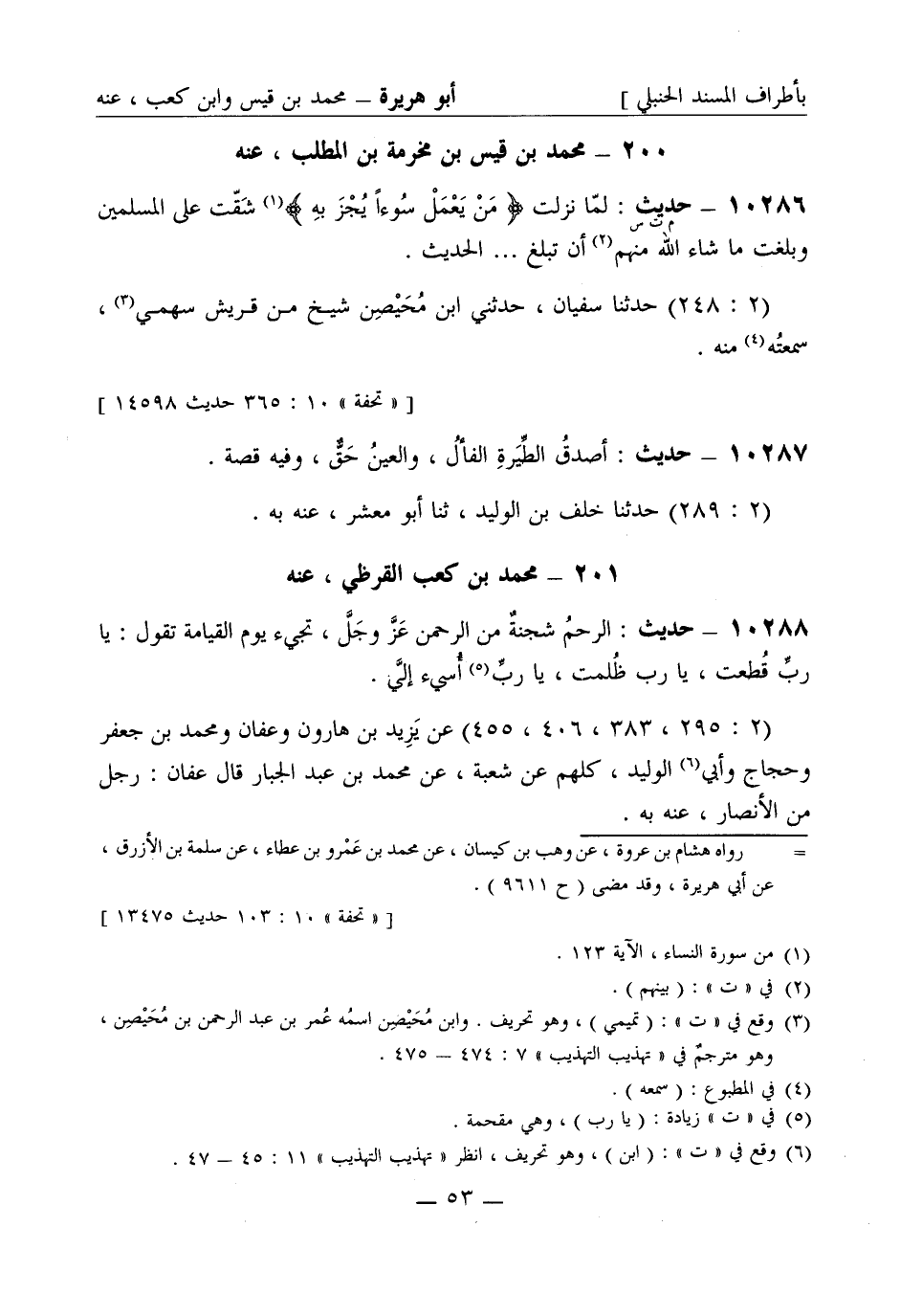 10288 - حديث الرحم شجنة من الرحمن عز وجل تجيء يوم القيامة تقول يا رب قطعت يا رب ظلمت يا رب أسيء إلي (2: 295 , 383 , 406 , 455) عن يزيد بن هارون وعفان ومحمد بن جعفر وحجاج وأبي الوليد كلهم عن شعبة عن محمد بن عبد الجبار قال عفان رجل من الأنصار عنه به