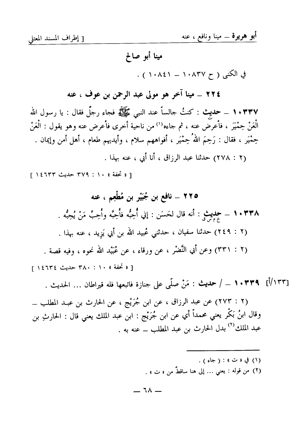 10339 - حديث من صلى على جنازة فاتبعها فله قيراطان ... . الحديث (2: 273) عن عبد الرزاق عن ابن جريج عن الحارث بن عبد المطلب وقال ابن بكر يعني محمدا أي عن ابن جريج ابن عبد الملك يعني قال الحارث بن عبد الملك بدل الحارث بن عبد المطلب عنه به -[69]- قلت وقد وافق عبد الرزاق هشام بن يوسف ووافق البرساني أبو عاصم ذكره البخاري في تاريخه الكبير