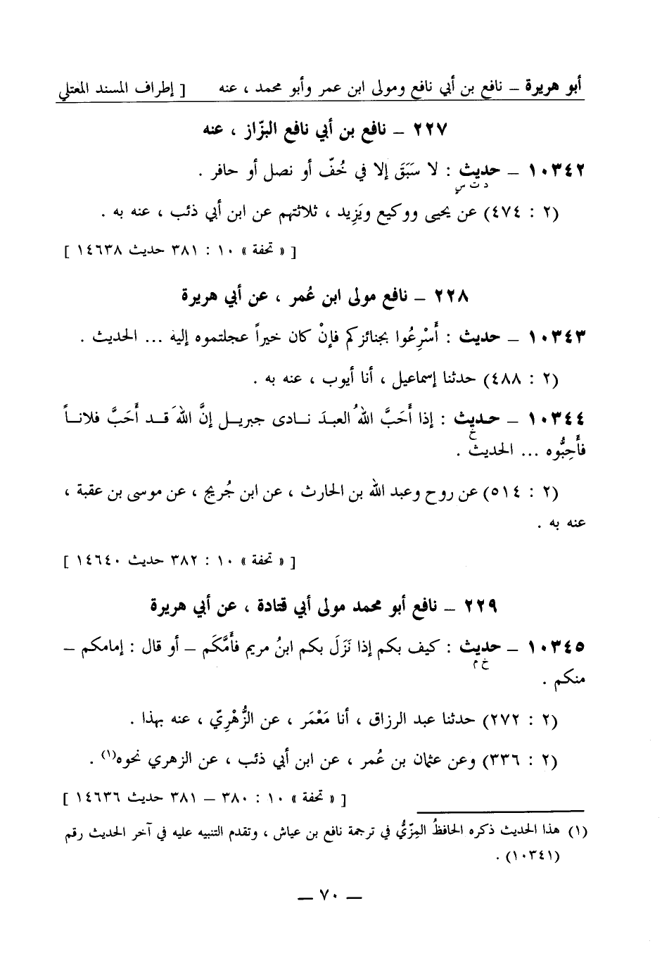 10343 - حديث أسرعوا بجنائزكم فإن كان خيرا عجلتموه إليه ... . الحديث (2: 488) حدثنا إسماعيل أنا أيوب عنه به