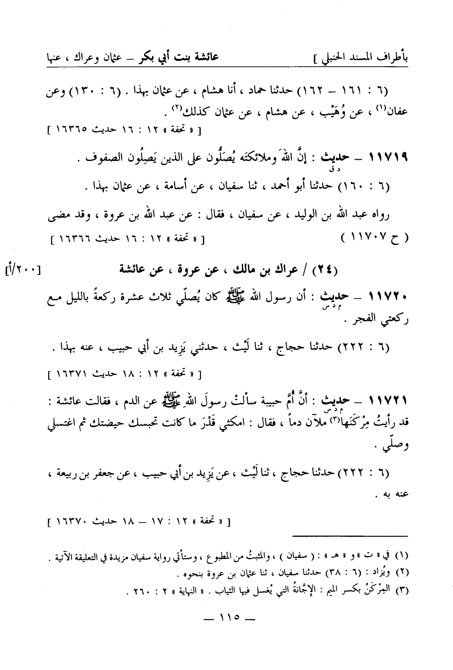 [تحفة 12: 17 - 18 حديث -[116]- 16370] (25) عطاء بن أبي رباح، عن عروة، عن عائشة