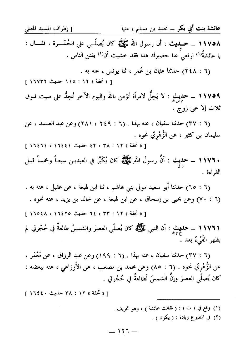[تحفة 12: 38، 42 حديث 16441، 16461]