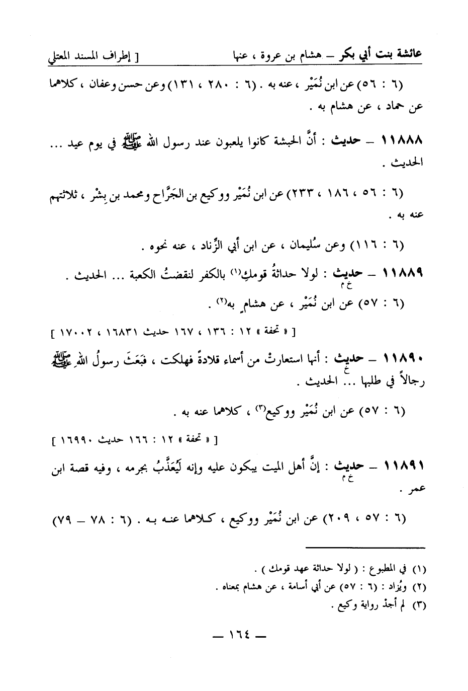 11889 -[خ م] حديث لولا حداثة قومك بالكفر لنقضت الكعبة ... . الحديث (6: 57) عن ابن نمير عن هشام به