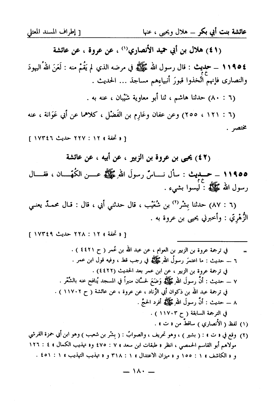[تحفة 12: 227 حديث 17346] (42) يحيى بن عروة بن الزبير عن أبيه عن عائشة
