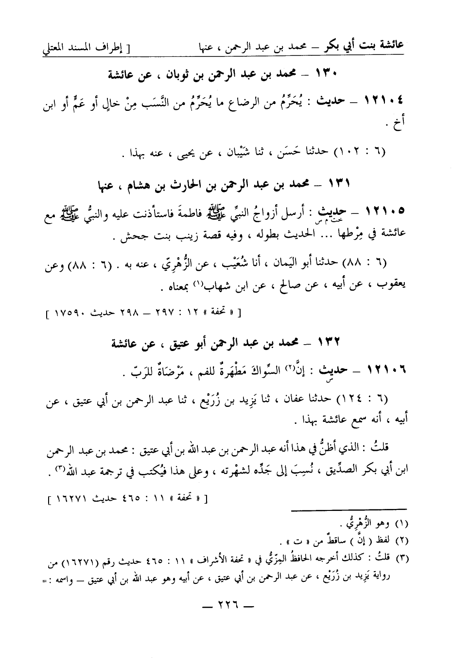 [تحفة 12: 297 - 298 حديث 17590] 132 - محمد بن عبد الرحمن أبو عتيق، عن عائشة