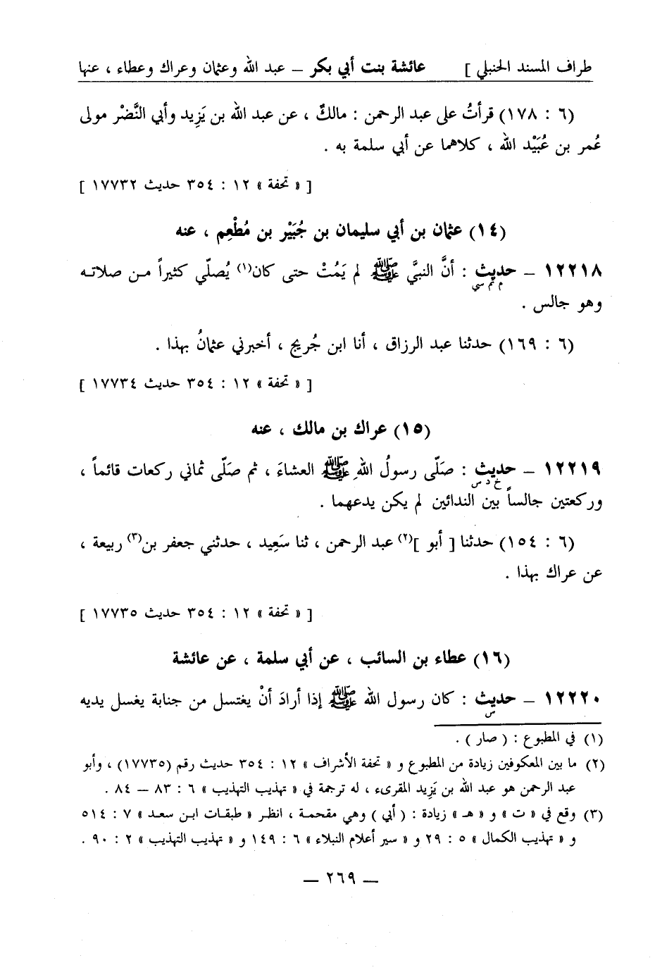[تحفة 12: 354 حديث 17735] (16) عطاء بن السائب عن أبي سلمة عن عائشة