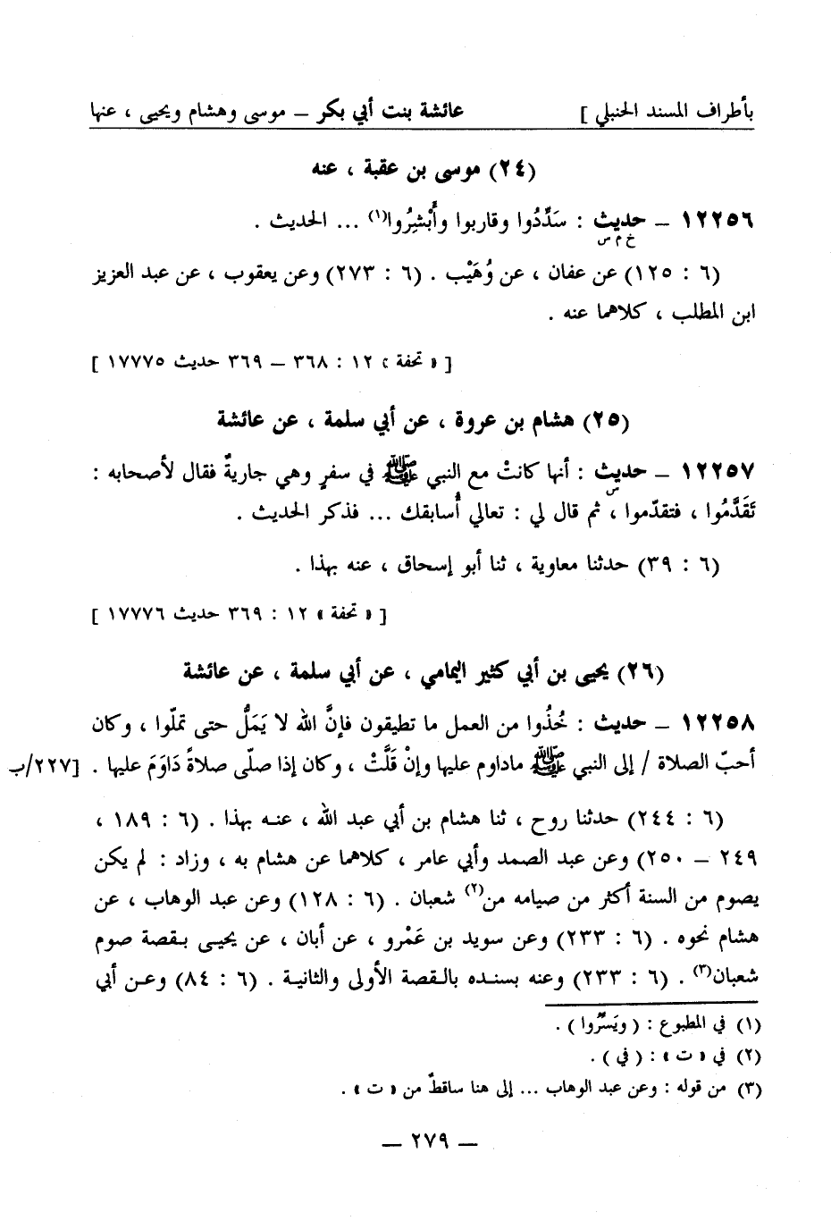 [تحفة 12: 368 - 369 حديث 17775] (25) هشام بن عروة عن أبي سلمة عن عائشة