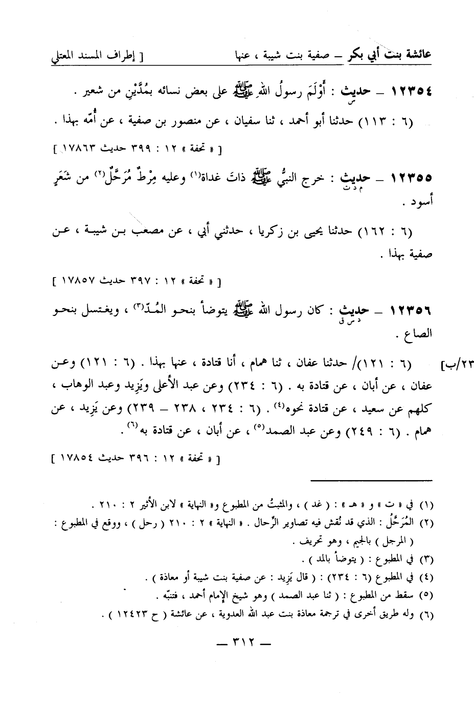 12356 -[د س ق] حديث كان رسول الله صَلَّى اللَّهُ عَلَيْهِ وَسَلَّمَ يتوضأ بنحو المد ويغتسل بنحو الصاع (6: 121) حدثنا عفان ثنا همام أنا قتادة عنها بهذا (6: 121) وعن عفان عن أبان عن قتادة به (6: 234) وعن عبد الأعلى ويزيد وعبد الوهاب كلهم عن سعيد عن قتادة نحوه (6: 234، 238 - 239) وعن يزيد عن همام (6: 249) وعن عبد الصمد عن أبان عن قتادة به