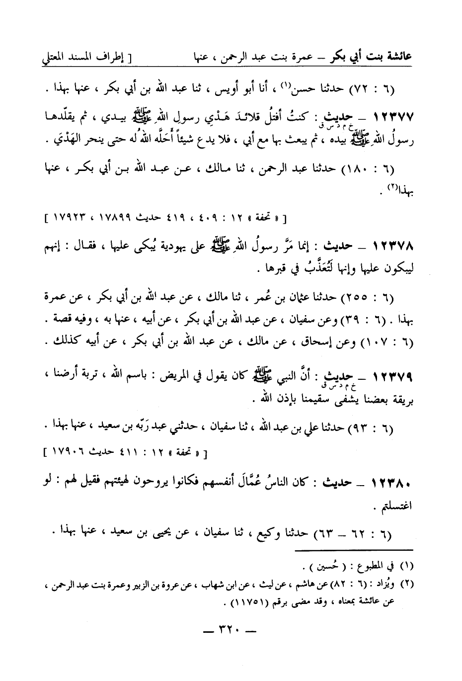 [تحفة 12: 409، 419 حديث 17899، 17923]